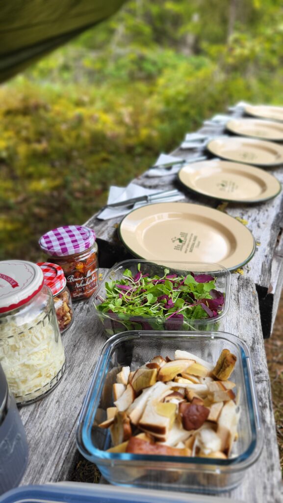 The fire crackles, carrying with it the scent of smoke, and ingredients foraged near by. Every dish tells a story of the land it came from – clean flavors drawn straight from nature, crafted with care, and enjoyed in the company of others. A wilderness cook with you and your group will prepare and meal made from local, seasonal ingredients, celebrating the richness of pure Nordic nature. From the sweetness of berries to the earthiness of wild mushrooms, every bite connects you to the forest, the fire, and the moment.